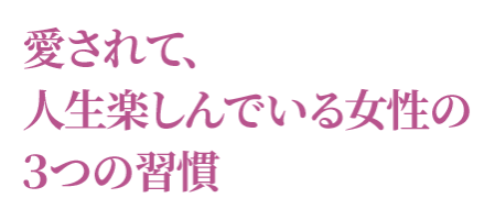 オンナとしての理想の人生を送っている人が日々、心がけている3つの習慣があります。この“3つの習慣”を取り入れていく事で、自然とあなたの内側からワクワク感が沸いてきて、男性からも女性からも愛され「オンナの楽しさ」がぐんぐん上がって行きます。^^)